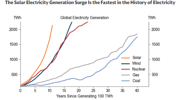 Against this backdrop, even with policy support weakening in China and the US, it is still necessary to reassess what is driving Solar’s rapid expansion and what the forward path looks like. Since entering its acceleration phase, solar reached roughly 2,129 TWh of annual generation in only 11 years — making it the fastest-growing energy technology in power history.
