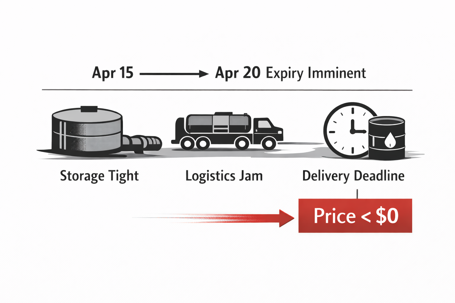 The market explanation is now familiar: pandemic lockdowns crushed demand; supply didn’t adjust fast enough; and at the delivery point, storage and logistics became binding constraints. But to understand why the price went negative, it helps to re-insert the physical reality that financial markets often abstract away. The front-month WTI contract is physically deliverable. As expiry approaches, holders who don’t close out need the capacity to take delivery and manage storage and transport. When storage is scarce and time is short, the contract begins to behave less like a clean financial price and more like an obligation with a ticking clock. A negative price, in that context, is not mystical. It’s the marginal cost of getting rid of the obligation.