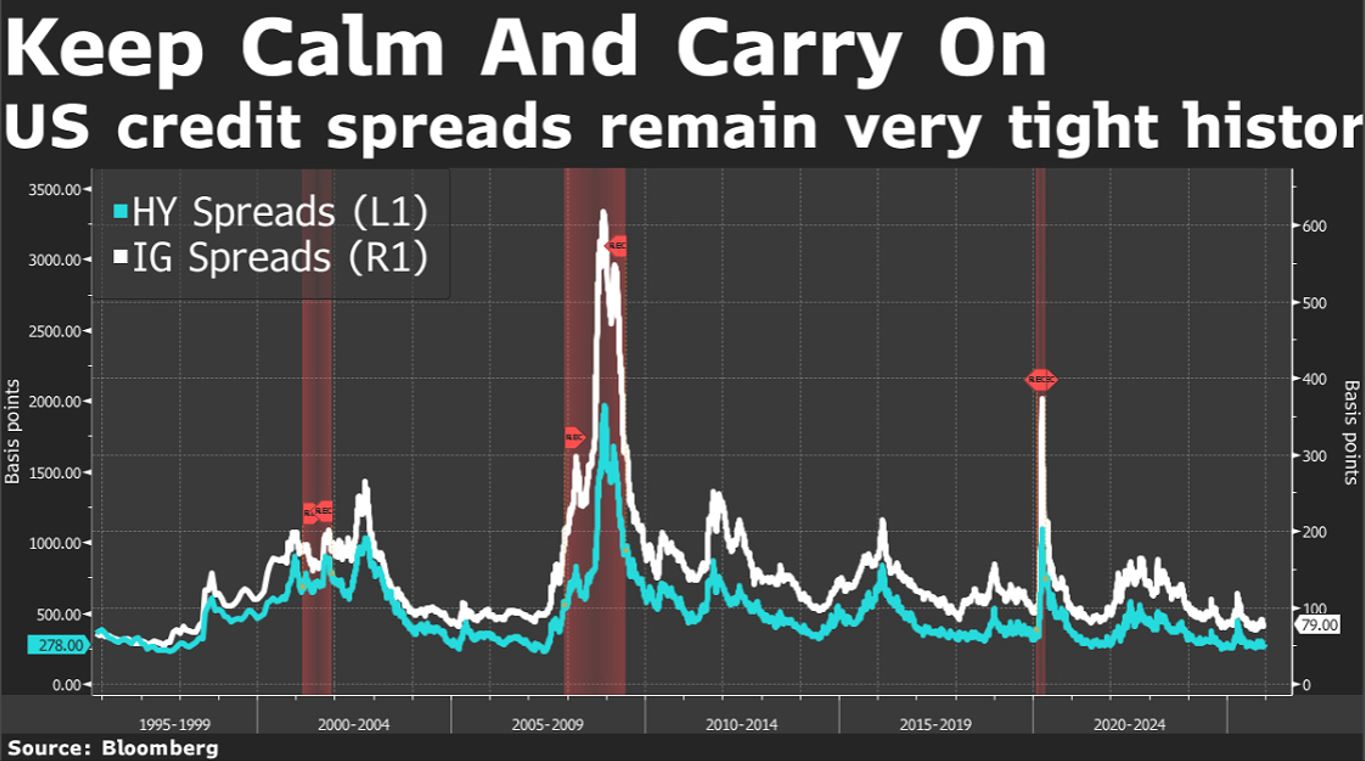 問題在於,當利差處於歷史偏緊區間時,投資人並非在為成長付費,而是在為「沒有波動」背書——這類風險定價在順風時運作良好,但一旦波動回歸,非對稱性便會迅速暴露。
