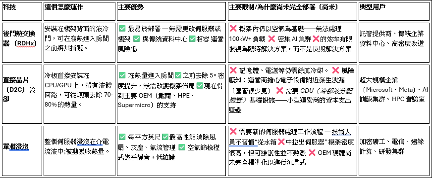 一. 當下:混合部署房間 —— 後門熱交換器(RDHx)+ 晶片直冷(D2C)+ 空氣冷卻;